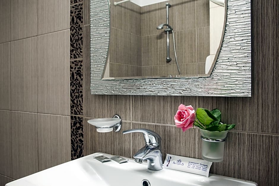The room offers a balcony with a view of the rock pillars of Meteora or the Koziakas Mountain Range.