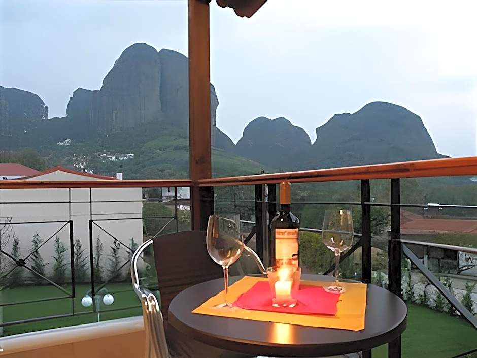 The room offers a balcony with a view of the rock pillars of Meteora or the Koziakos Mountain Range.